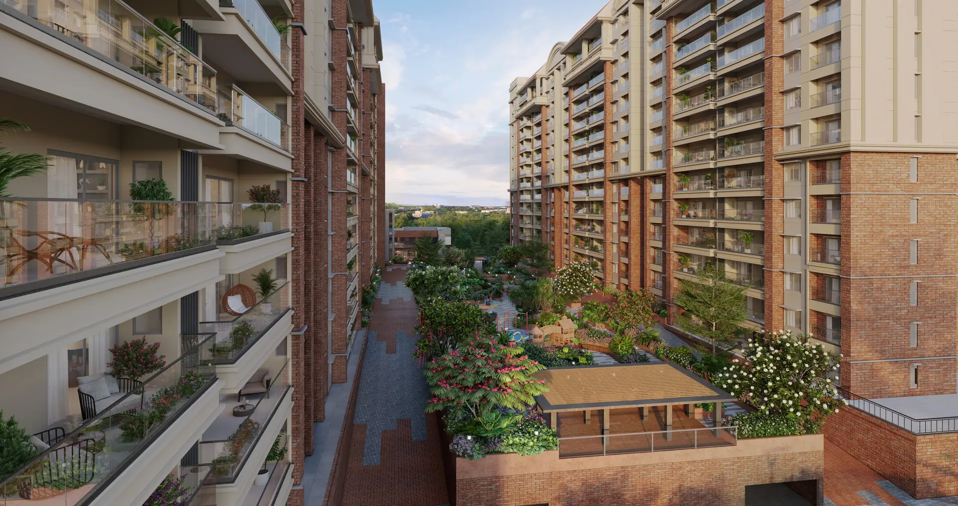 Brigade Insignia feels much like the chosen land, with exquisite residences and a classic rooftop retreat for intimate gatherings. Light and air play a playground here during the day, and evenings bring along musical notes of starry nights.